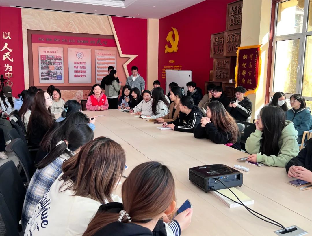 社区工作者带领同学们对社区的会议室、多功能活动室等进行了实地参观,并向他们介绍了社区服务日常的工作内容、流程及社区社工项目的开展情况。随后,社工、社区工作者与同学们进行了开放式交流,围绕“社区可链接的儿童资源有哪些、如何更好的找到目标群体、社区针对老年群体开展了那些服务”等问题进行了探讨交流,一时间场面异常热烈。同学们也表示今后会到社区参加志愿服务活动,为参与社区治理贡献一份力量。