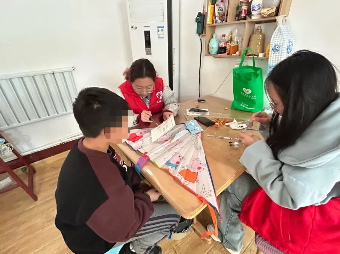 社工根据前期入户资料以及这几次会谈观察到,豪豪平时文娱生活比较单一,除了上学时间,回到家后的“业余爱好”是各类电子游戏,不但影响学习,且与家人的沟通很不顺畅甚至易发生争吵。这些问题导致他在外界交往时出现孤僻、自卑等情绪,不愿意与他人接触,很容易被排赤在同辈群体之外,对他人际交往能力造成了一定的影响。为了帮助豪豪改善这一状况,本次我们会谈带给豪豪的是亲子DIY风筝,豪豪在听到亲子DIY风筝时,有一些惊喜,随后便默默走到一边不说话。社工观察到豪豪的反应后,招呼着他和妈妈一同坐下,社工运用鼓励、倾听等支持性技巧,接纳他的情绪,给予他充分表达的空间,化解豪豪的抗拒和害羞。在画风筝的过程中,社工巧妙的引导豪豪和妈妈互动,鼓励豪豪分享自己的创意,同时也引导妈妈积极参与,共同完成风筝的绘制。豪豪和妈妈在创作中相互协作,分享彼此的想法和感受,亲子之间的距离也逐拉近。