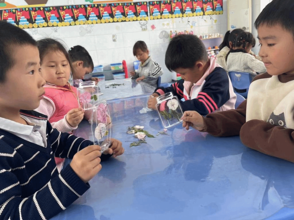 经过一番努力,孩子们的压花作品终于完成了。他们欣喜地欣赏着自己的劳动成果,纷纷向同伴展示,并交流着制作过程中的体会和收获。