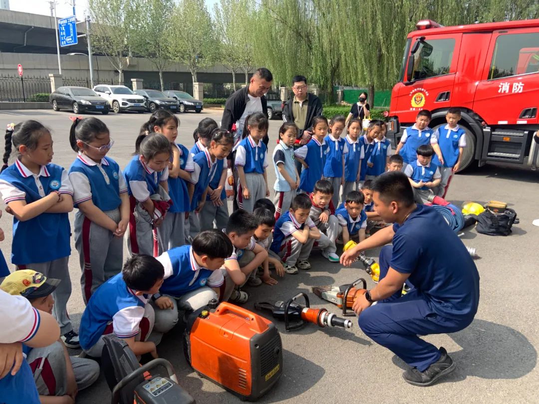 活动现场,消防员叔叔针对孩子们的疑问耐心解答,并逐一展示各种消防装备和救生工具,用最浅显的语言介绍随车器材的名称、用途及使用方法,让孩子们零距离认识消防工具的同时,也对消防工作有了更加直观的认识。