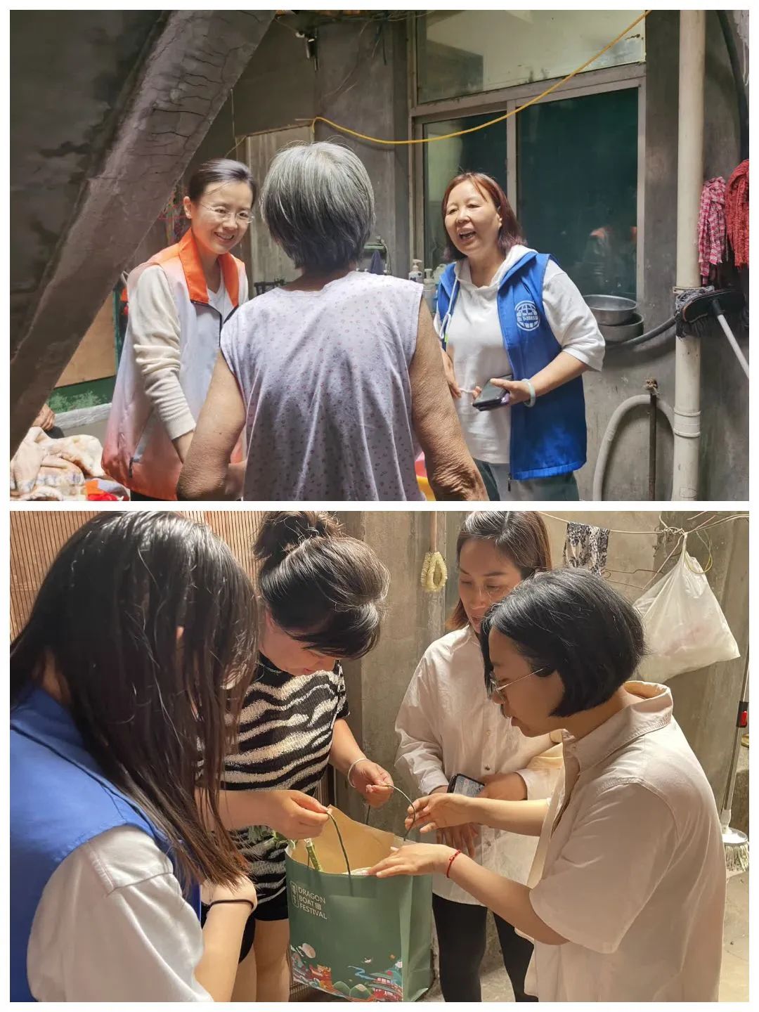 社工站联合鞭指巷社区将创益园为大家准备的端午节日礼包一起送到服务对象家里,为其送上节日的关怀,此次活动共走访了社区内的10户困难家庭。在探访过程中,社工、社区工作人员与服务对象亲切交谈,耐心倾听,详细了解他们的生活近况和需求,用真诚的服务态度表达了对他们的关心关爱,以及节日祝福。杨阿姨看着社工同事,激动地说:“感谢你们啊,感谢社区、感谢政府一直记着我们,逢年过节的从来没忘了。”