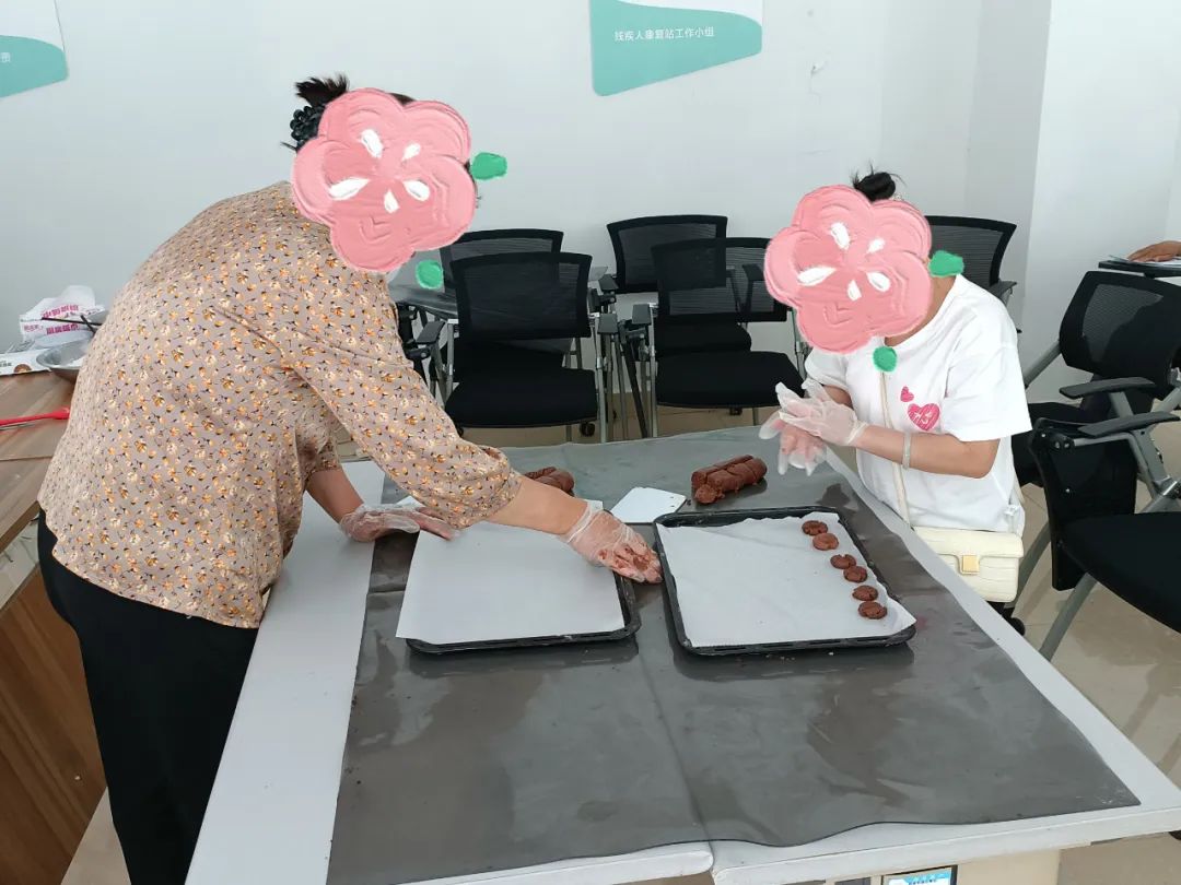 活动筹备之初,社工站充分发挥桥梁纽带作用,深入调研残疾人需求,精心挑选并邀请了拥有丰富教学经验与实战技巧的专业面点师傅作为主讲嘉宾。培训采用“理论筑基+实操演练”的创新模式,确保内容既专业又贴近残疾人的实际需求,力求让每一位参与者都能轻松上手,学有所获。活动当天,社工们早早地布置好现场,耐心引导每一位残疾人朋友签到入场。在理论授课环节,社工们协助讲师,用最简单直接、易于理解的语言,将复杂的面点制作原理拆解成一个个小步骤,参与者们听得津津有味,兴趣盎然。在社工和老师的双重指导下,参与者们分组合作,从称量材料、和面发酵到成型烘烤,每一步都亲自动手,体验着从无到有的创造乐趣。巧克力曲奇的香甜、麻花的酥脆、披萨的丰富层次,在大家的共同努力下逐一呈现,空气中弥漫着幸福的味道。品尝着自己亲手制作的美食,参与者们脸上洋溢着满足与自豪的笑容,李叔说:“这样的培训既实用又有趣,不仅学会了新技能,还增强了自信心和社交能力。”