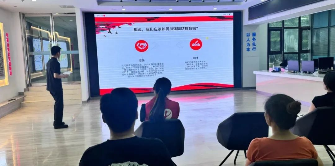 退役大学生士兵们首先向在场的居民们讲述了参军的初心使命,分享了他们从部队再到校园的青春故事。然后他们结合自身在部队里的所学和成长收获及精心制作的宣传片从国防的含义、我国国防事业的发展历程及我国现代化国防建设等方面进行深入浅出的讲解,在交流互动环节退役大学生士兵们对社区居民提出的各类问题进行了耐心的解答,进一步让社区居民对国防知识有了深入的了解。