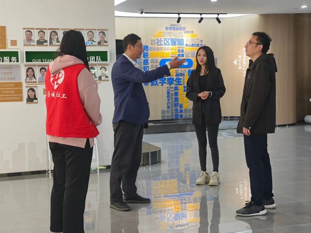 2024年4月20日,中国社会工作学会秘书长邹学银教授莅临历城区港沟街道社工站进行实地调研指导,山东青年政治学院政治与公共管理学院副院长卢鹏程陪同。