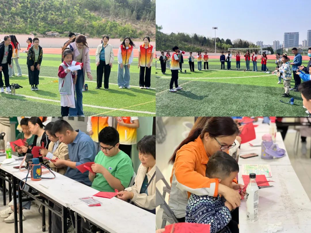 在运动场,各种丰富多彩的运动场景让孩子们对大学生活充满向往,未使孩子们“零距离”感受大学生活,在社工的组织下志愿者和孩子及家长们玩起了“雨过天晴”“马兰花”等互动游戏,在一片欢声笑语中,活动氛围达到顶峰;在培训公寓,孩子们参与到志愿者们精心准备的剪纸活动中,让孩子和家长们在亲身体验的过程中增进亲子关系,感受中华传统文化的魅力。