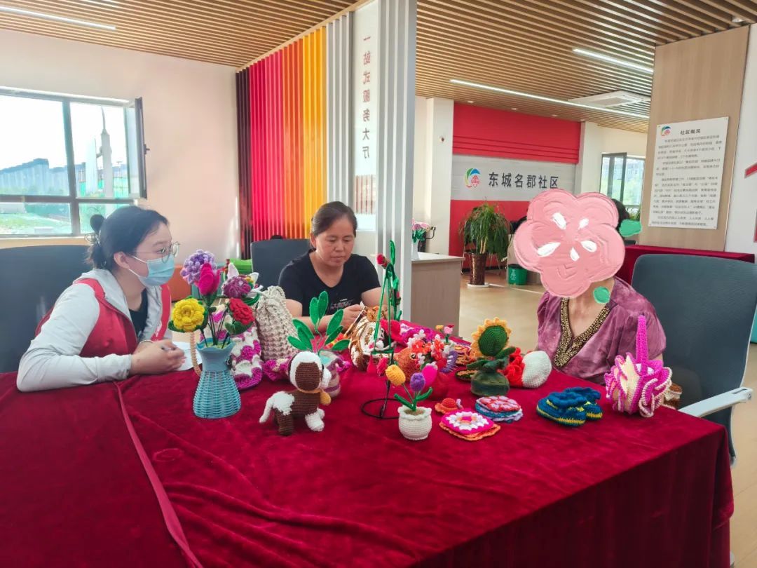 郭店街道社工站在走访过程中发现一名爱好钩织的居民——张阿姨,通过与张阿姨聊天,初步了解到她虽喜欢钩织,但才能无处施展内心郁闷。9月3日,在与社区对接情况后,决定与张阿姨在东城名郡社区党群服务中心开展一场会谈,细化其需求并商讨针对性开展服务。