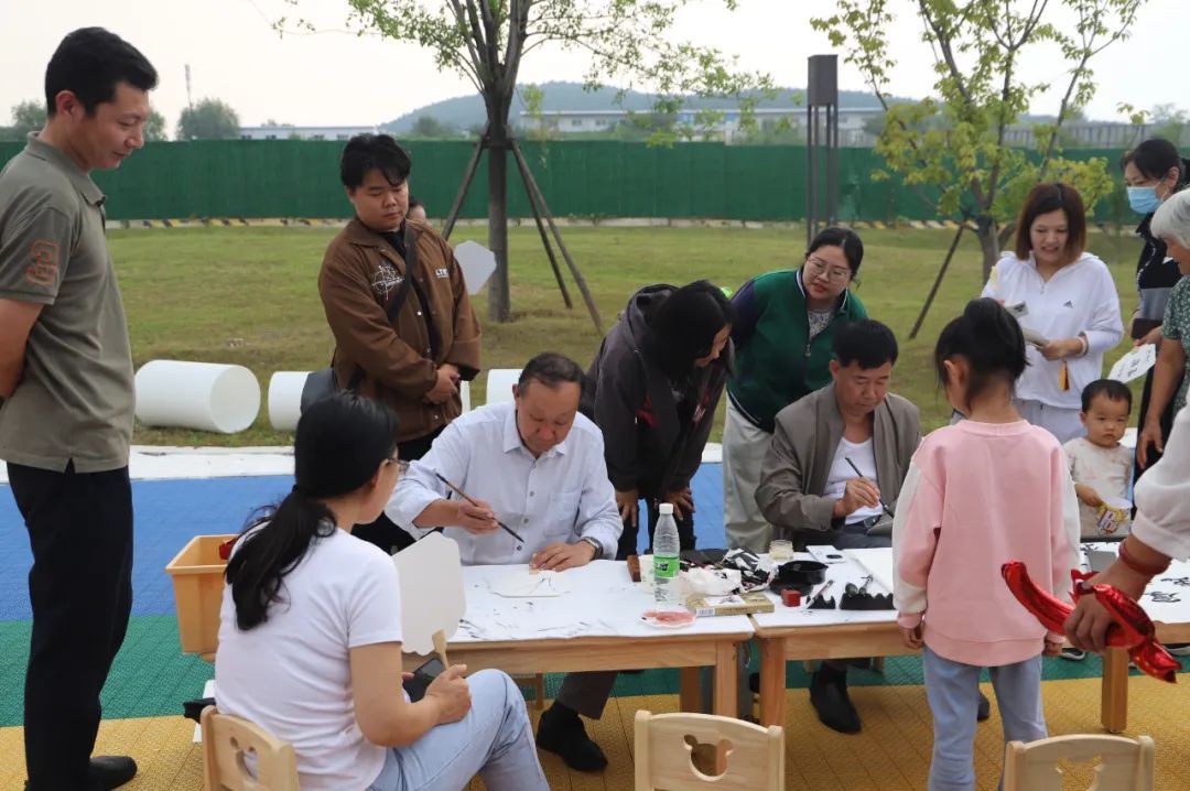 活动伊始,我们邀请书法大师,带领孩子们和家长一起体验书法的魅力。墨香四溢中,一笔一划间,孩子们不仅学会握笔、运笔的基本技巧,更感受到书法所蕴含的深厚文化底蕴。家长与孩子并肩作战,共同书写“国庆快乐”、“祖国万岁”等字样,一幅幅作品跃然纸上,墨趣童心,乐在其中。