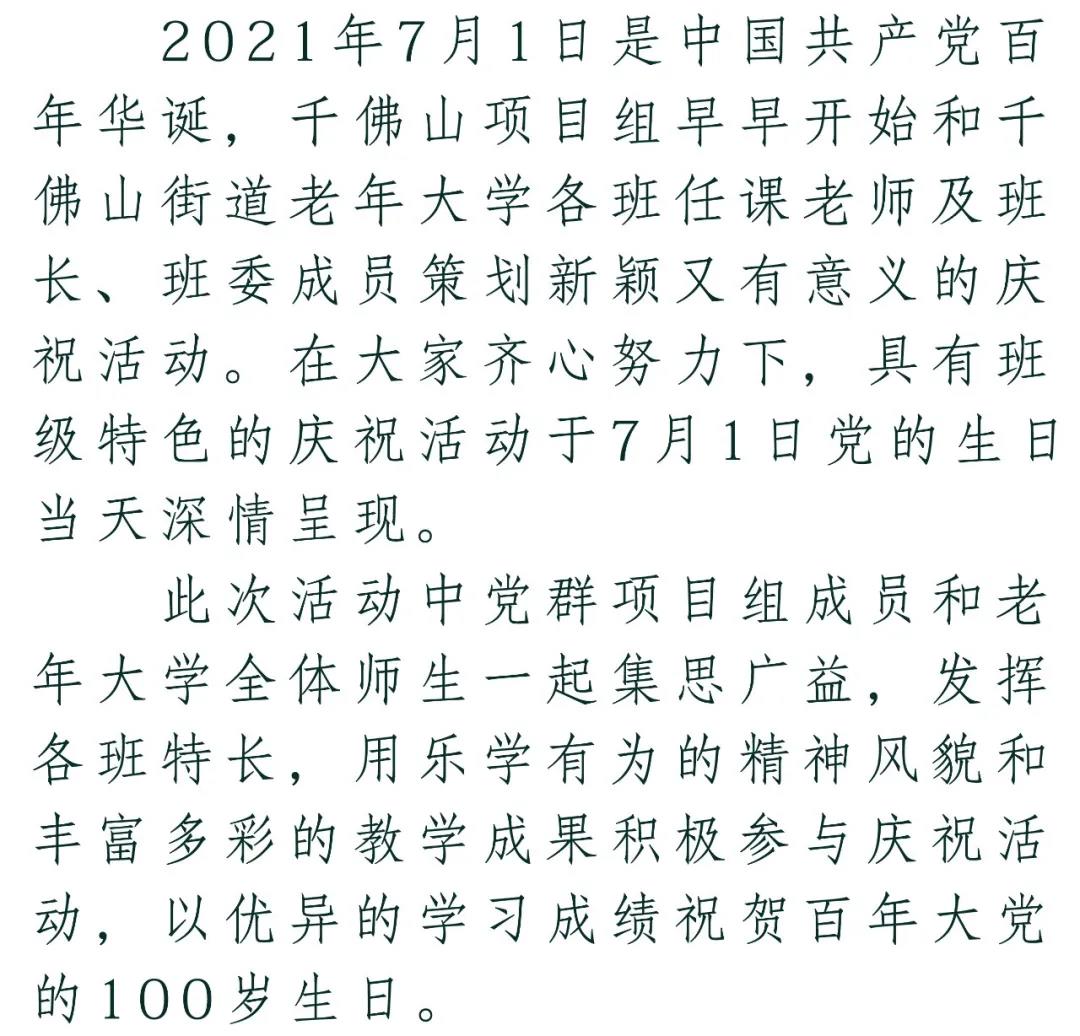 【千佛山街道社工站】“银发红心永向党” --千佛山街道老年大学庆祝中国共产党成立100年