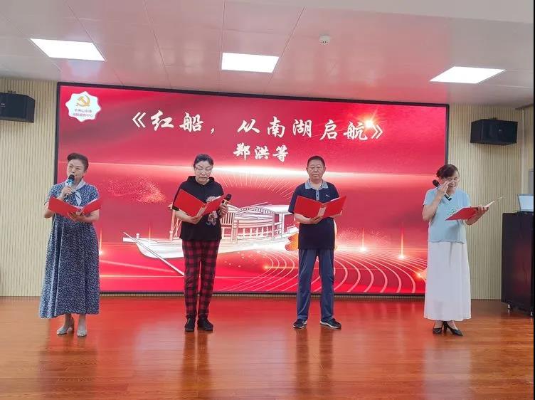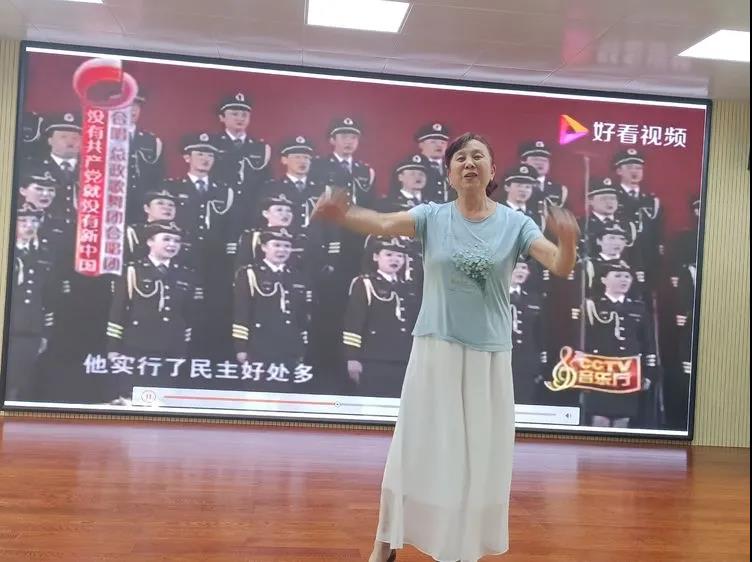 习近平深情地说:“上海党的一大会址、嘉兴南湖红船是我们党梦想起航的地方。”由朗诵班的郑洪等同学带来了诗朗诵《红船,从南湖启航》,庆祝着100年前的7月,中国共产党第一次全国代表大会在浙江嘉兴南湖的一条游船上胜利闭幕,庄严宣告中国共产党的诞生。田建设老师的一首情景诗朗诵《今夜星光灿烂》、金玉仙朗诵的《祝贺我们的党百岁生日,向党说句心里话》、牟建设演奏的葫芦丝加伴唱《再吹山歌给党听》表现出了对中国共产党诞生的喜悦,从《义勇军进行曲》到东方红,从春天的故事到走进新时代,100年的风雨历程,100年的辉煌历史,在每一个关键时刻,在每一次重大关头,都是您,我们伟大的中国共产党,把握历史大势,顺应时代潮流,带领人民,依靠人民,不断开拓。