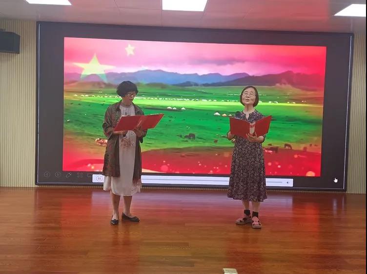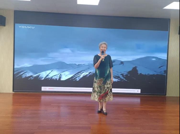 朗诵班的老师郝润辰用一篇史铁生的《命若琴弦》,他用讲故事的形式,缓缓地讲述出了对生命意义的思考,引人深思。庞联新老师朗诵的《沉马》,以一种深沉的、悲壮的豪情,拨动了我们的心弦,使我们感到一种极庄严、极崇高的美。杨平和彭岩朗诵的《不朽》、尚煥秀演唱的《前门情思大碗茶》、 马晓颐朗诵的《青春万岁》、彭岩朗诵的《历史的印记》以及高琴蓉和庞联新朗诵的《我的南方和北方》,让我们看到,在百年党史中,“爱国、进步、民主、科学”的理念也融入到中国人民的血液中,他们满怀对祖国和人民的赤子之心,无数革命英烈为了民族独立、人民解放、国家繁荣、人民幸福,誓死拼搏,直到流尽最后一滴血,永远长眠在我们脚下的这片热土上。