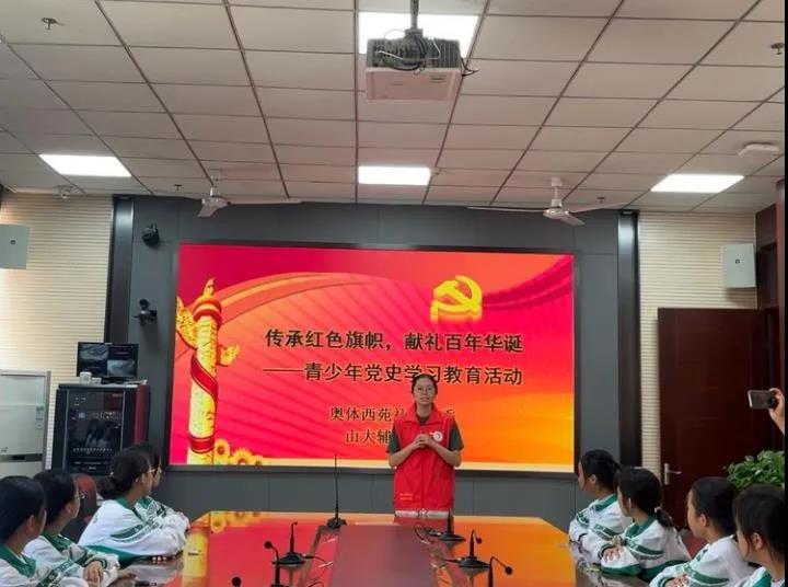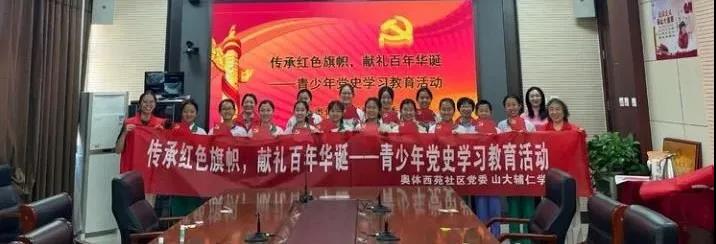 为深入贯彻落实习近平总书记在党史学习教育动员大会上关于“抓好青少年学习教育,让红色基因、革命薪火代代传承”的重要讲话精神,5月31日下午,奥体西苑社区党委联合山大辅仁学校举办了“传承红色旗帜,献礼百年华诞”青少年党史学习教育。